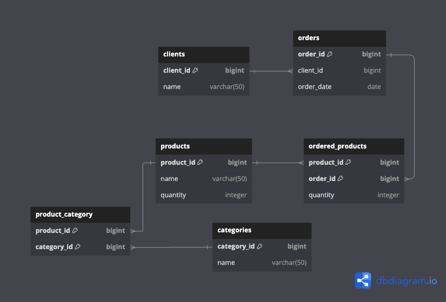 product_id int [ref: > products.id]