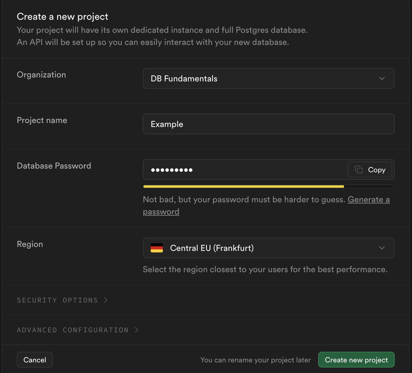 - Log in to https://supabase.com/ (or sign up if you don’t have an account).
